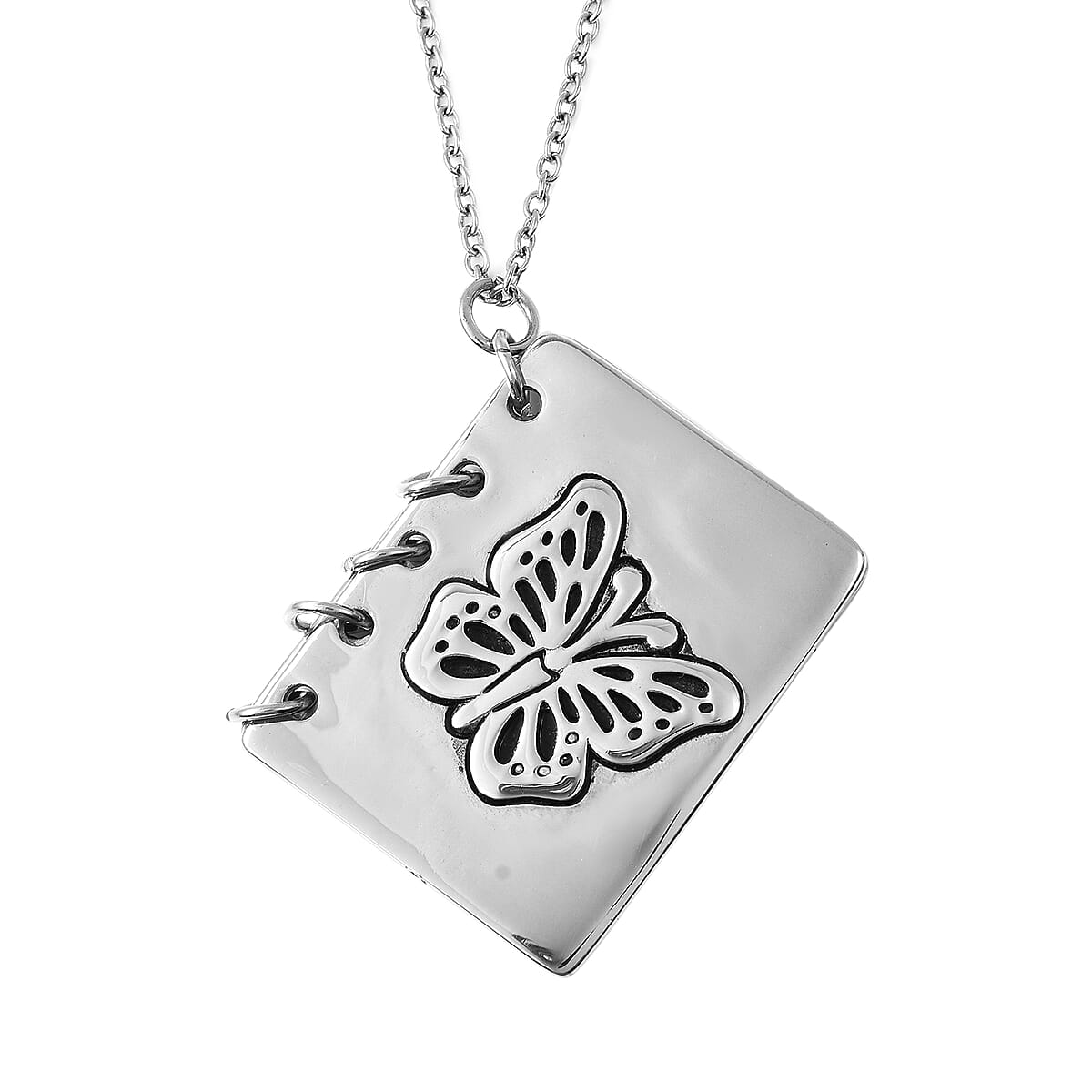 Butterfly Engraved Openable Pendant Necklace 20 Inches in Black Oxidized Stainless Steel
