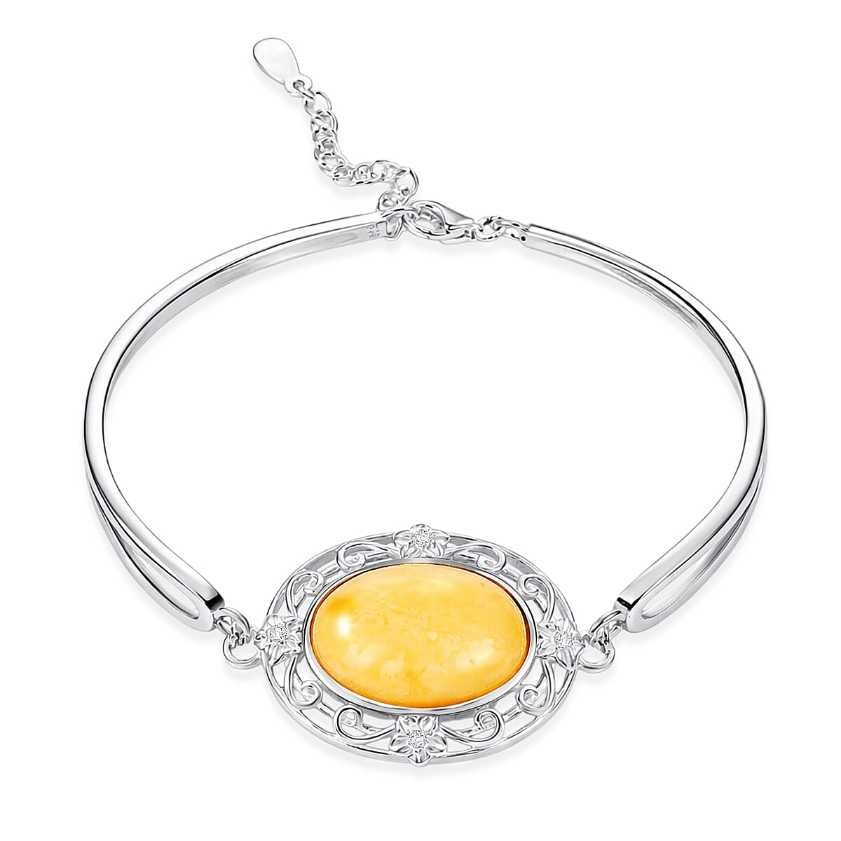 Butterscotch Amber, Simulated Diamond 0.80 ctw Bracelet in Sterling Silver (6.5-7.5In)