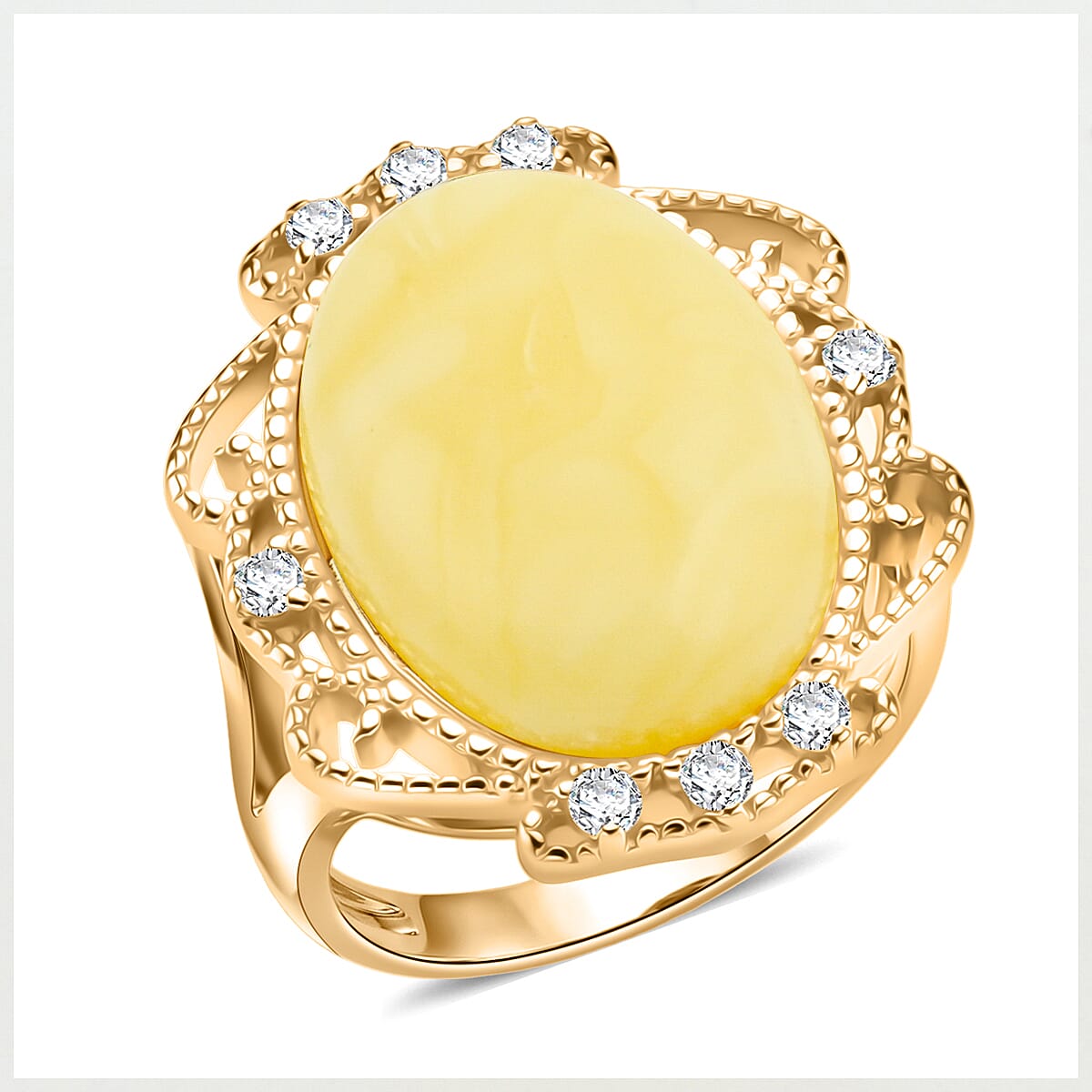 Butterscotch Amber, Simulated Diamond 2.00 ctw Ring in 14K YG Over Sterling Silver (Size 7.0)