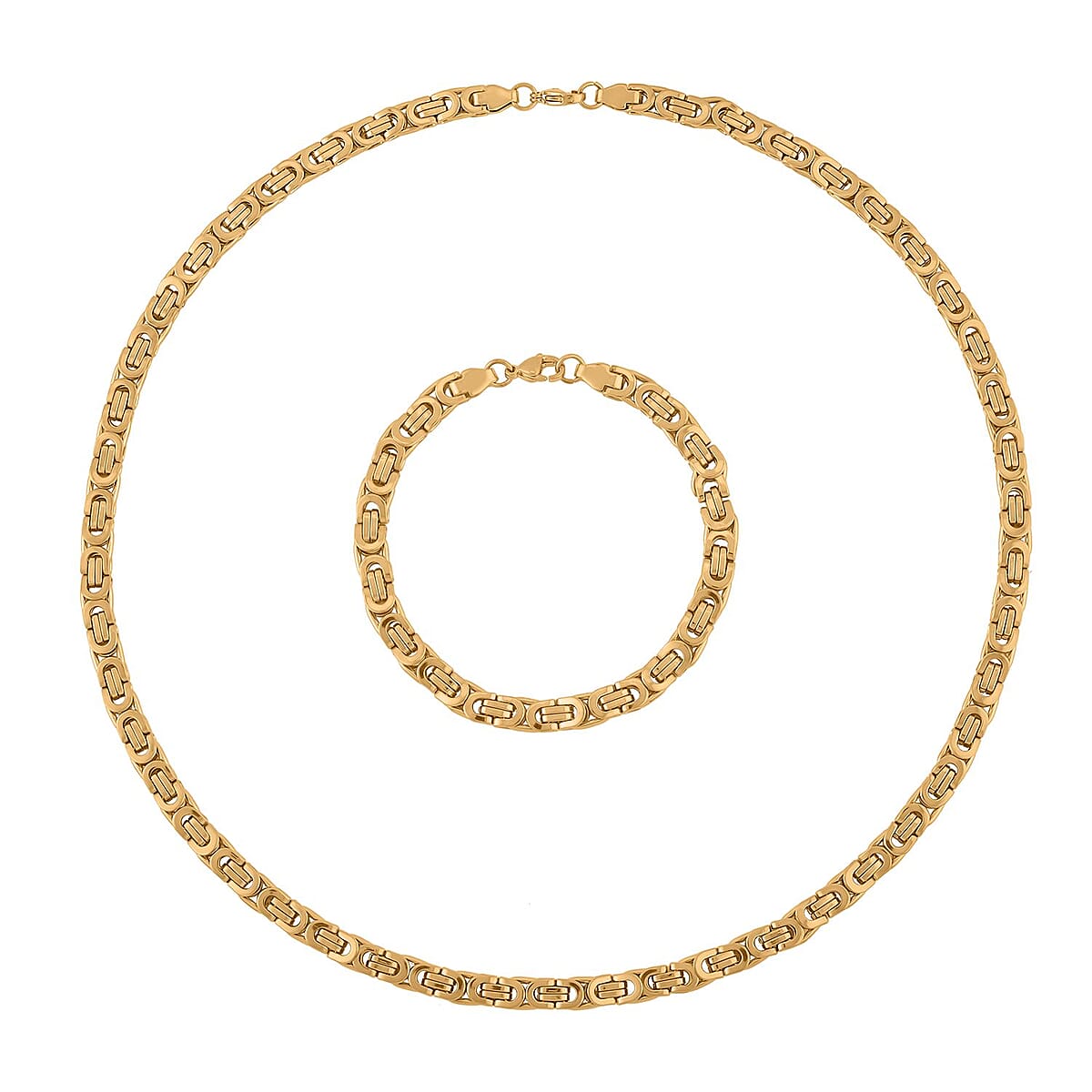 Byzantine Link Men's Chain Necklace (24 Inches) and Bracelet (8.5In) in ION Plated YG Stainless Steel | Tarnish-Free, Waterproof, Sweat Proof Jewelry