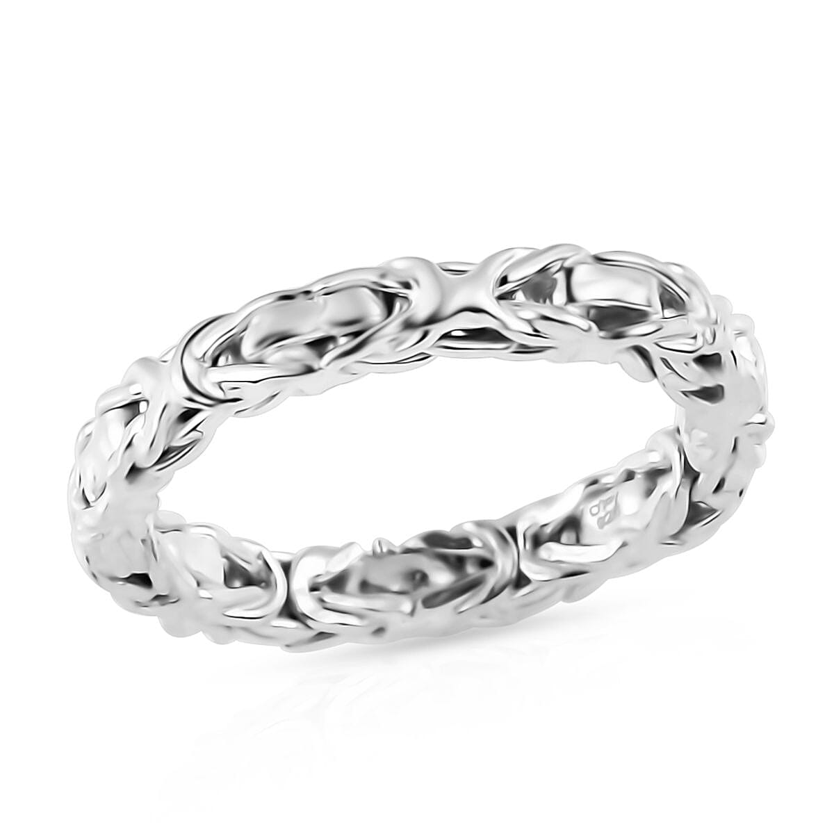 Crafted in sterling silver, this Byzantine ring showcases an expertly designed sequence of intricate links, forming a unique and eye-catching pattern. Distinctive design and meticulous craftsmanship make this band ring a standout piece, ideal for enhancing any ensemble.