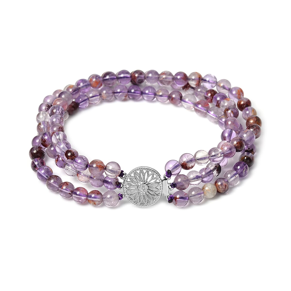 Cacoxenite Beaded 3 Row Bracelet in Rhodium Over Sterling Silver (8.00 In) 115.00 ctw