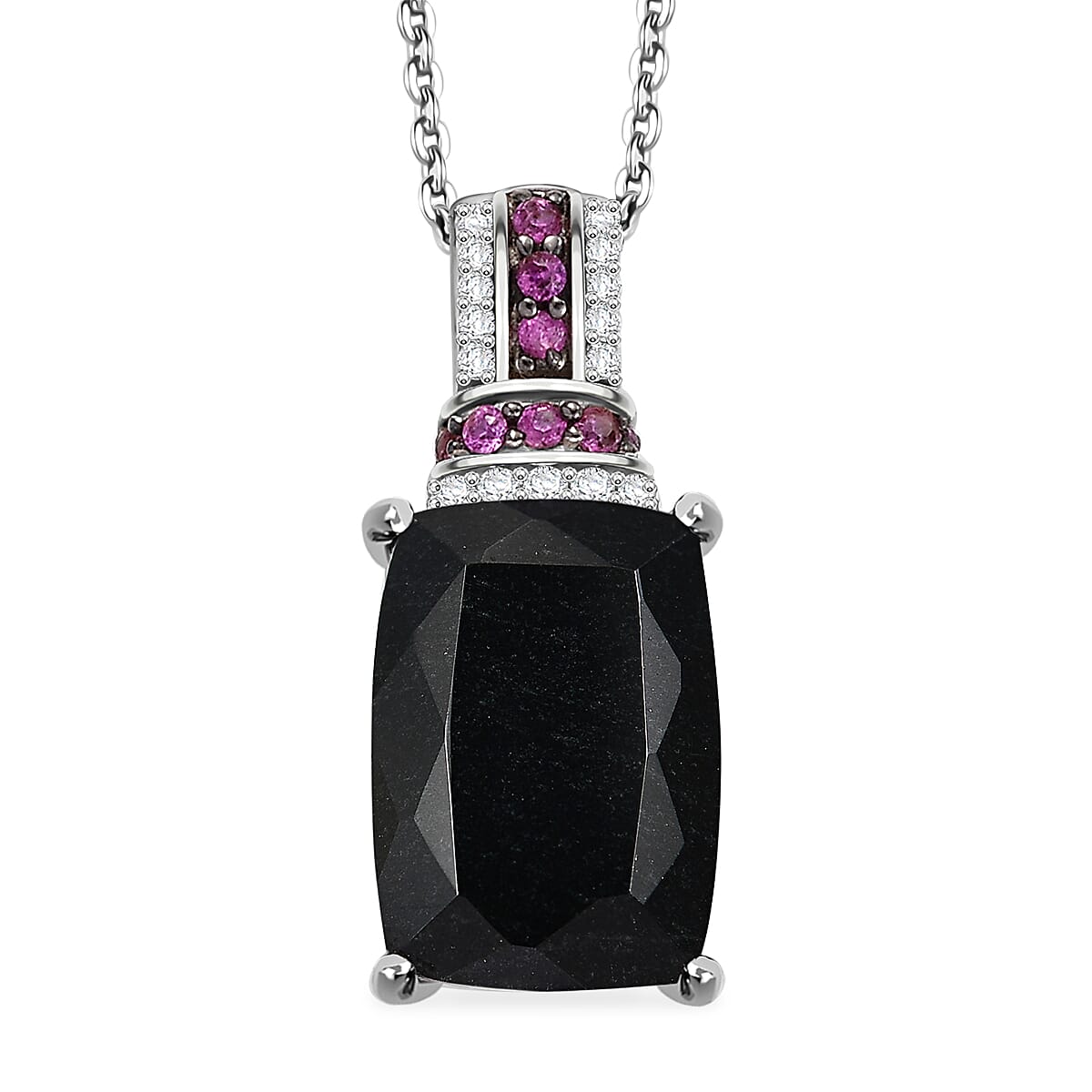 California Black Jade and Multi Gemstone 8.80 ctw Elegant Pendant Necklace in Rhodium Over Sterling Silver 20 Inches