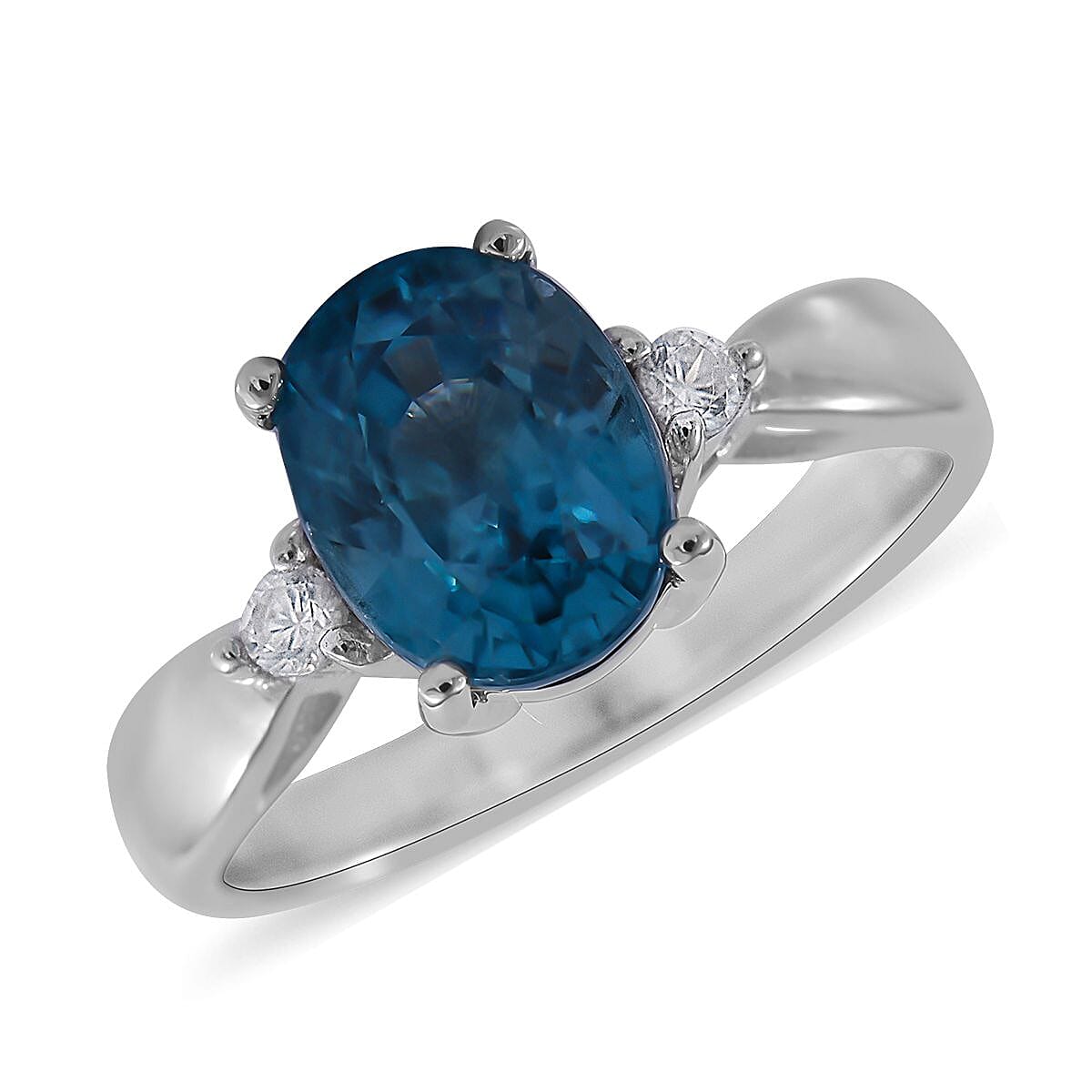 Cambodian Blue Zircon and White Zircon Ring in Platinum Over Sterling Silver (Size 6.0) 3.10 ctw