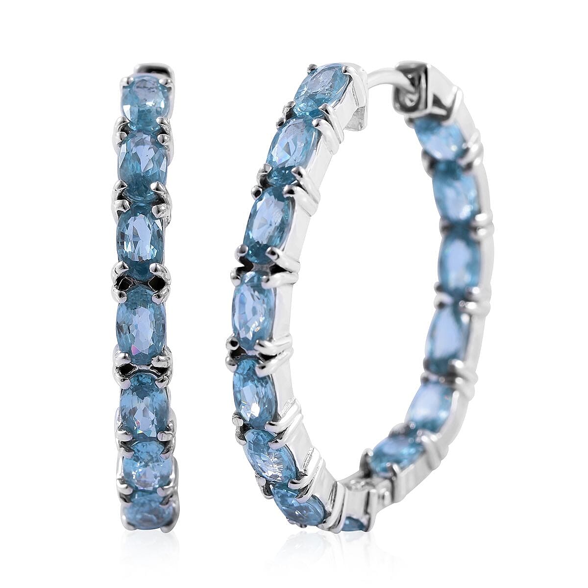 Cambodian Blue Zircon Inside Out Hoop Earrings in Platinum Over Sterling Silver 9.75 ctw