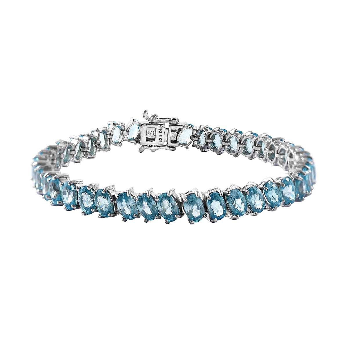 Elevate your style with our exclusive Cambodian blue zircon tennis bracelet. This stunning silver bracelet, meticulously crafted from sterling silver, epitomizes luxury and durability. The captivating blue zircon stones, elegantly set in a classic tennis bracelet design, make it a perfect gift for any occasion. With its secure tab insert clasp, this fancy bracelet symbolizes elegance and is a testament to fine craftsmanship – a must-have in every woman's bracelet collection.