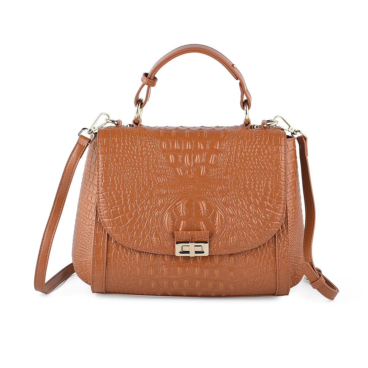 Camel Embossed Crocodile Pattern Adjustable and Removable Shoulder Strap Genuine Leather Tote Bag with Handle Drop