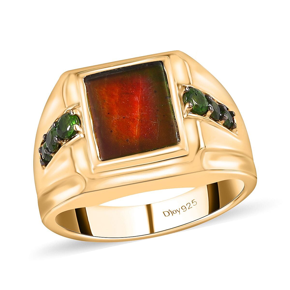 Canadian Ammolite and Chrome Diopside Men's Ring in Vermeil Yellow Gold Over Sterling Silver (Size 14.0) 0.65 ctw