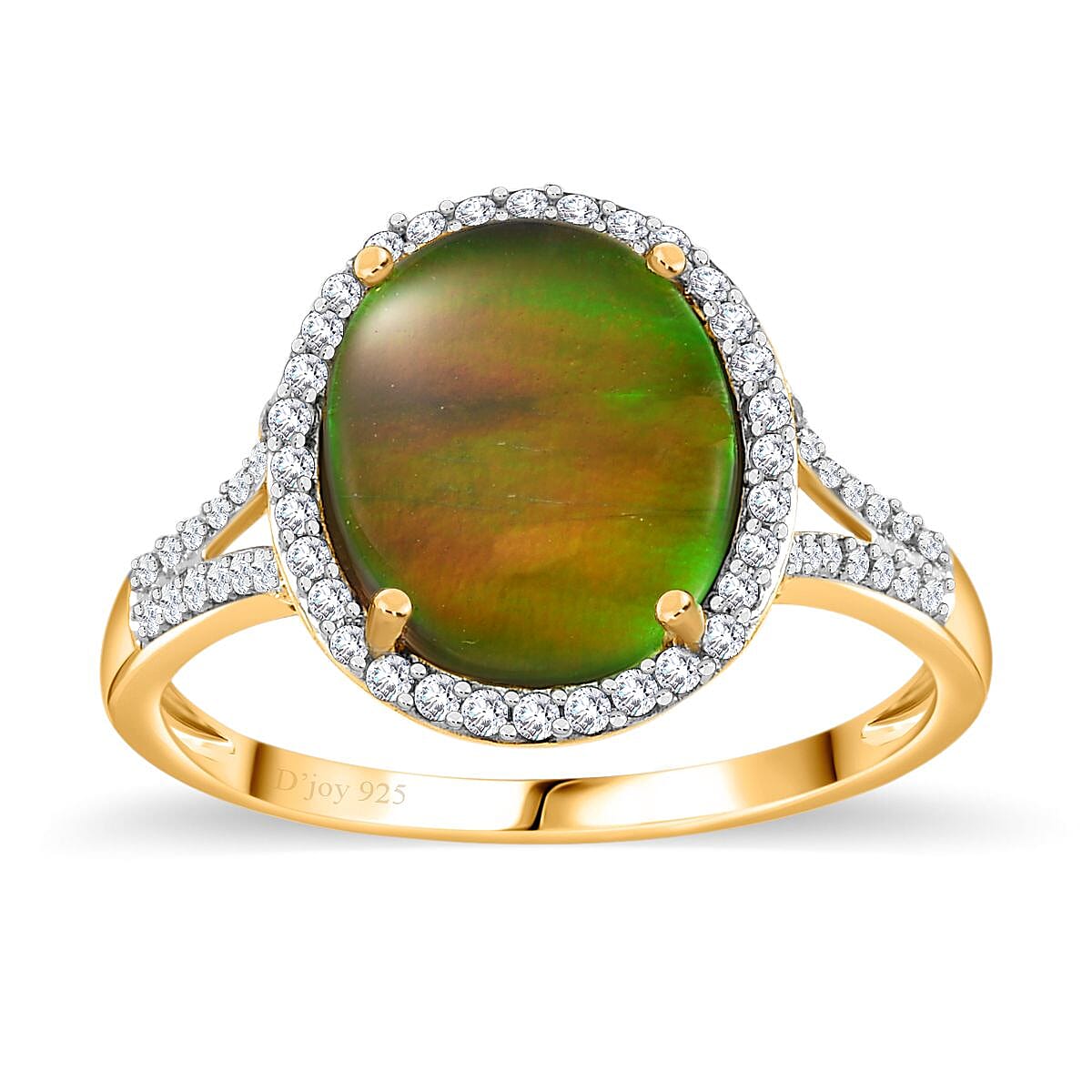 Canadian Ammolite and White Zircon Ring in Vermeil Yellow Gold Over Sterling Silver (Size 10.0) 4.10 ctw
