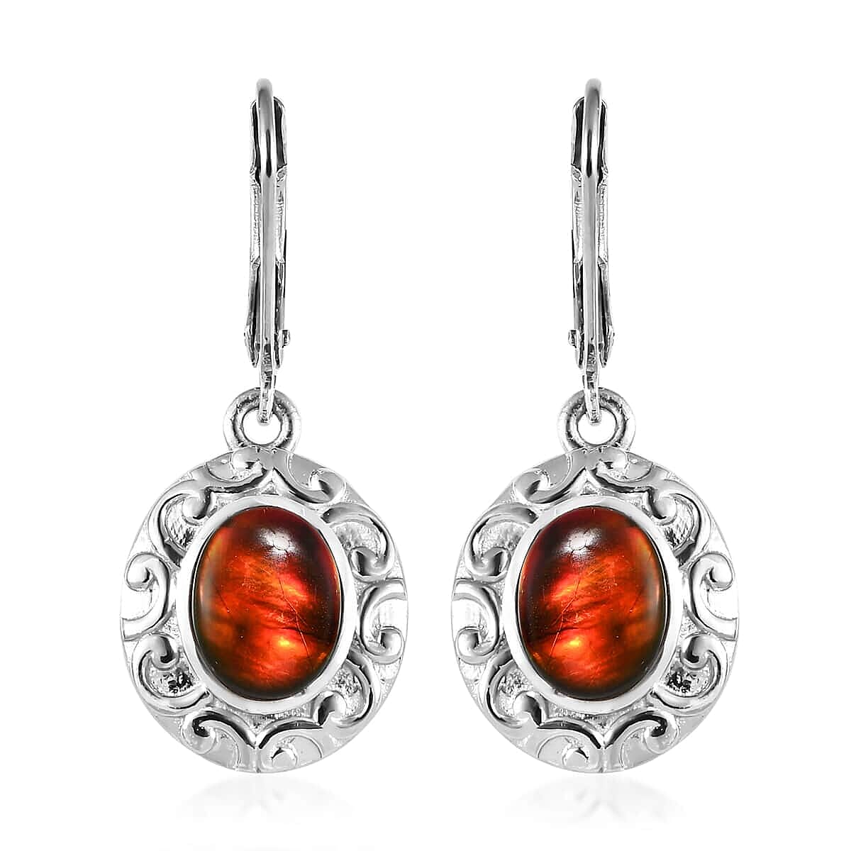 Canadian Ammolite Earrings in Platinum Over Sterling Silver