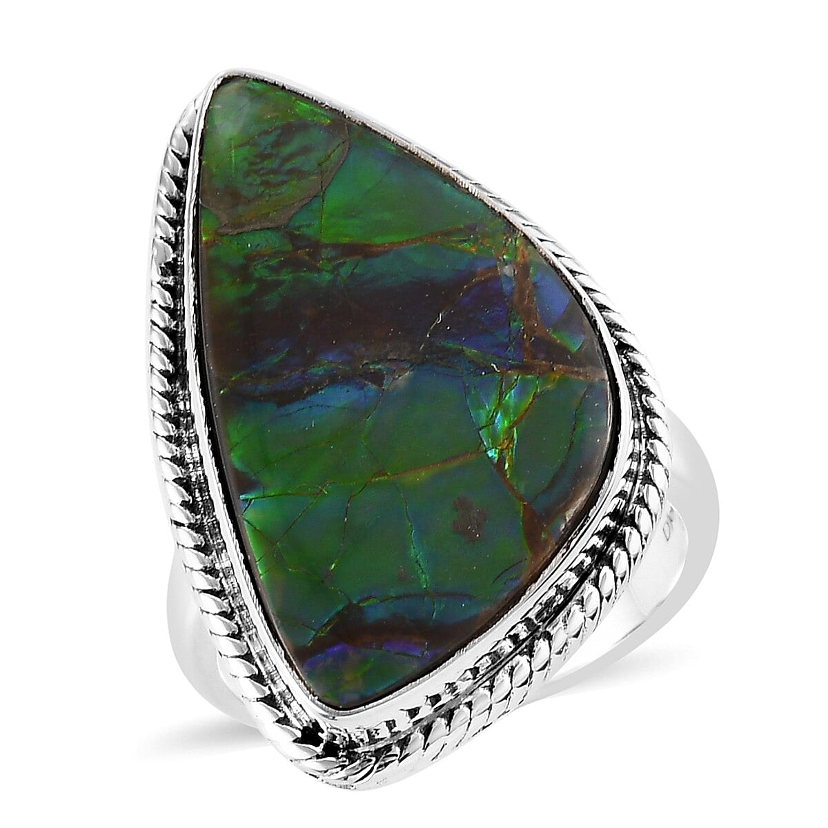 Canadian Ammolite Ring in Sterling Silver (Size 10.0) 5.50 Grams