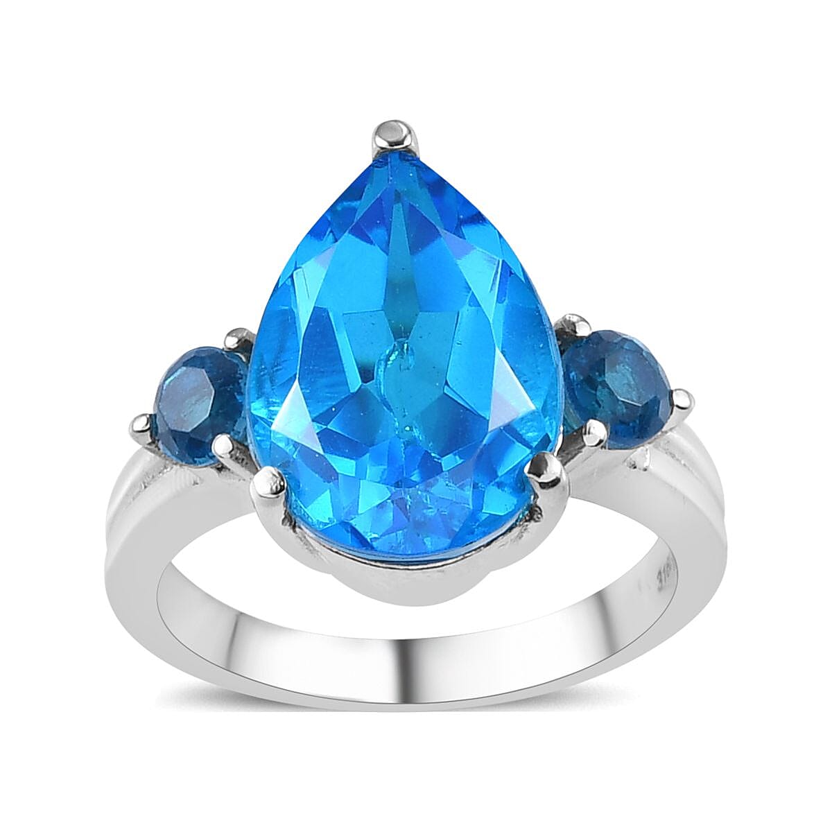 Caribbean Quartz 3 Stone Ring in Stainless Steel (Size 10.0) 7.00 ctw , Tarnish-Free, Waterproof, Sweat Proof Jewelry