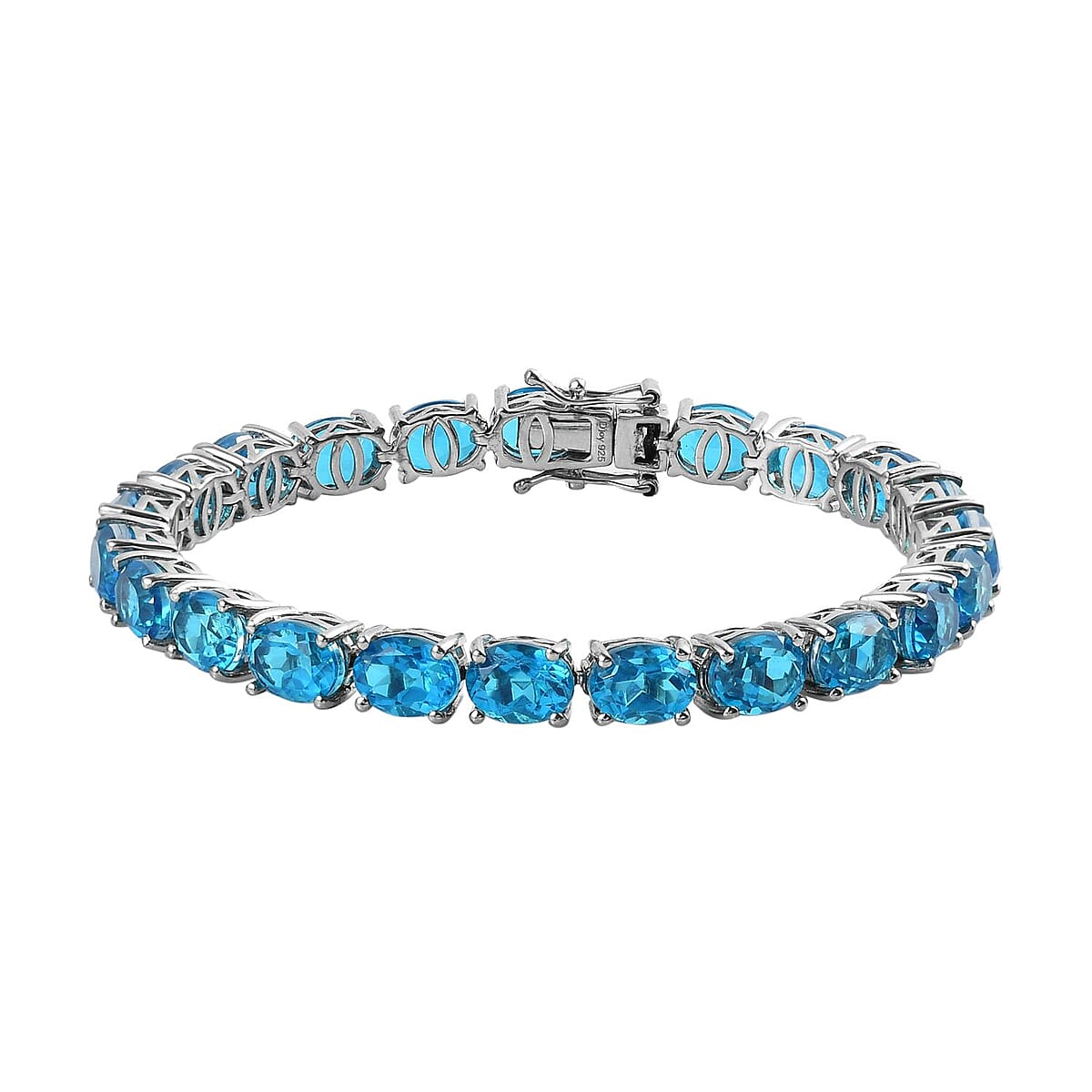 The tennis style is an inspiration for this Caribbean quartz tennis bracelet. The line bracelets were a fashion sensation in the jewelry era of the 20th century. The oval-shaped Caribbean quartz gems are used to embellish the bracelet's frame. The circular loop of the tennis bracelet is drenched in sterling silver with a platinum coating. Let the desire meet a new style with this blue tennis bracelet. Make room for some compliments when you wear this Caribbean quartz bracelet.