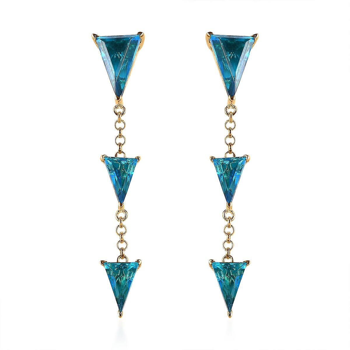 Caribbean Quartz (Triplet) Dangling Earrings in Vermeil Yellow Gold Over Sterling Silver 9.35 ctw