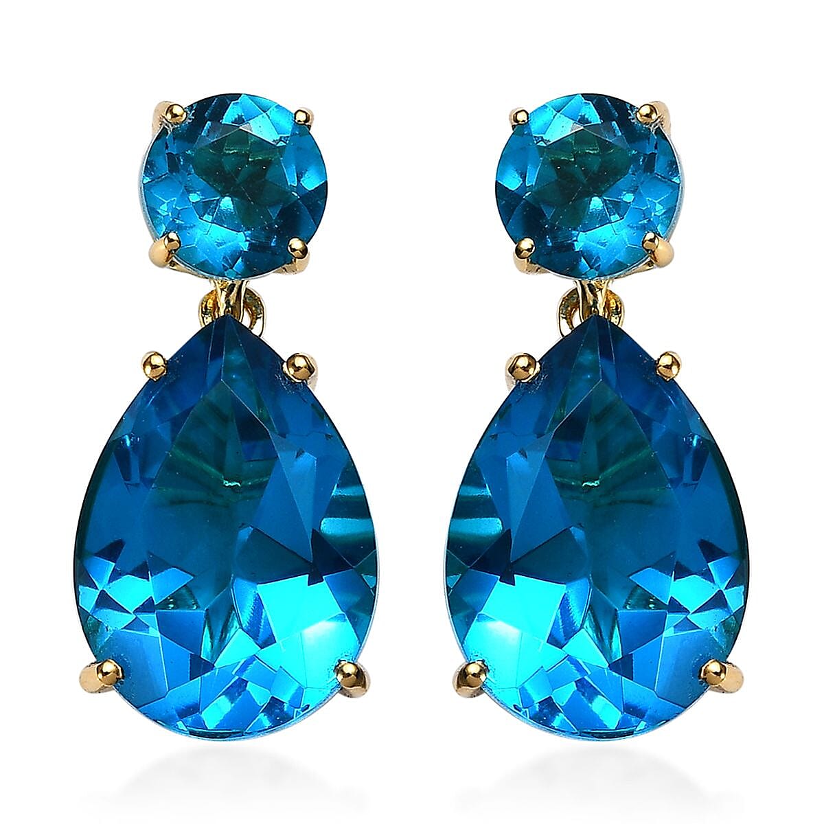 Caribbean Quartz (Triplet) Drop Earrings in Vermeil Yellow Gold Over Sterling Silver 12.60 ctw