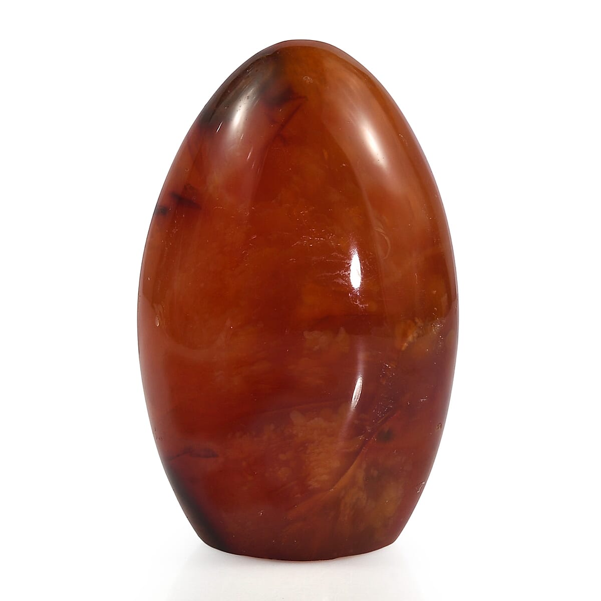 Warm, fiery tones define this carnelian freeform, creating a vibrant and expressive decorative accent. Its smooth surface and organic contours add energy and visual warmth. Designed to uplift interiors with bold color and natural character.