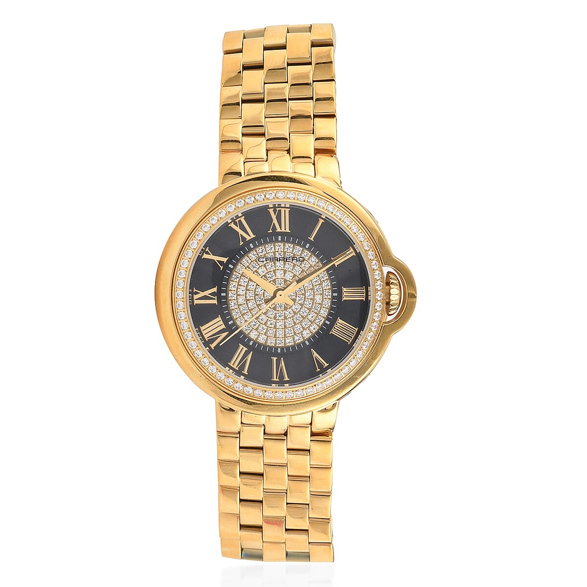 CARRERO Toulon Austrian Crystal Swiss Movement Watch in ION Plated YG Stainless Steel With Blue Dial (37mm)