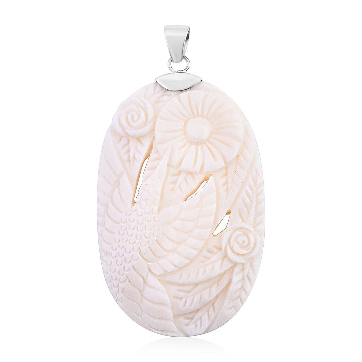 Carved Bone Flower Pendant in Sterling Silver