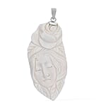 This Bali goddess carved bone pendant boasts a meticulously detailed carving of a goddess figure on bone, elegantly encased in a sterling silver setting. This silver jewelry combines traditional craftsmanship with the durability and shine of modern metalwork, offering a distinctive accessory that blends cultural artistry with contemporary style.