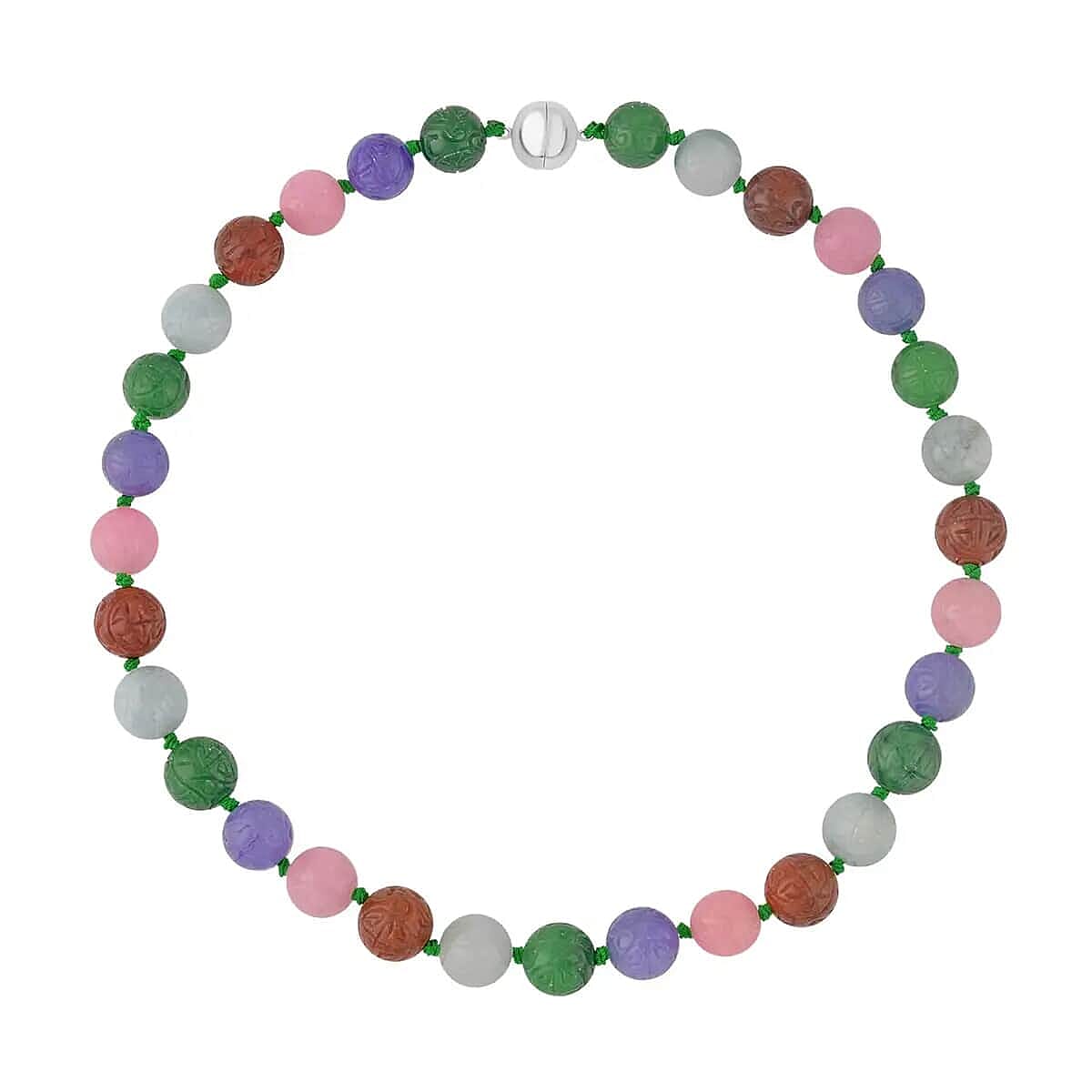 Carved Multi Color Jade Beaded Necklace, 20 inch Sterling Silver Necklace, 13-15mm Jade Beads Necklace 684.00 ctw