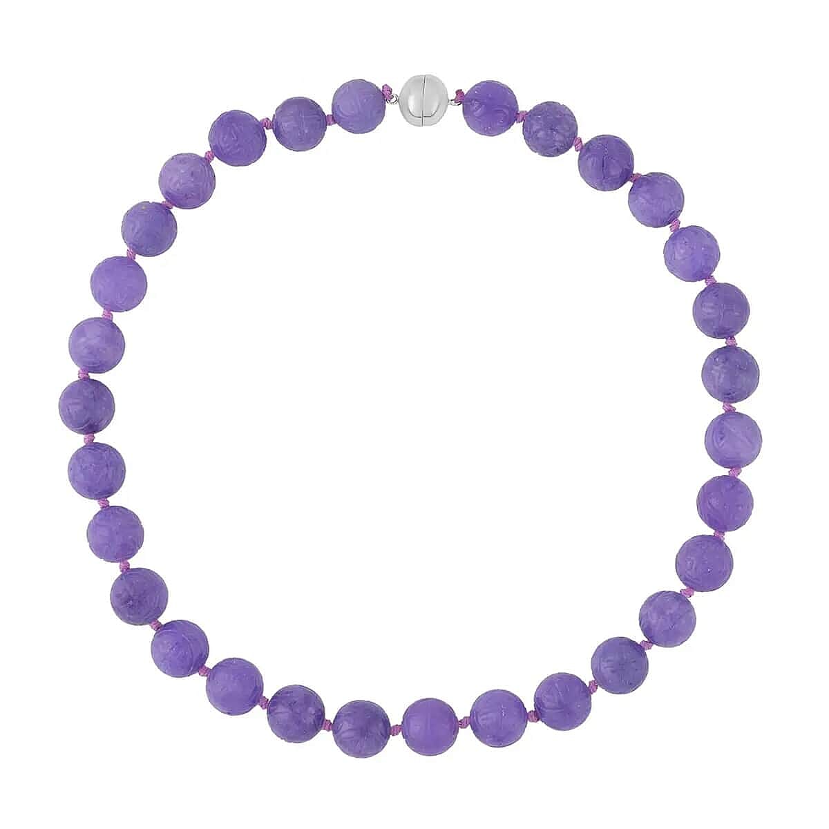 Carved Purple Jade Beaded Necklace, 20 inch Sterling Silver Necklace, 13-15mm Jade Beads Necklace 684.00 ctw