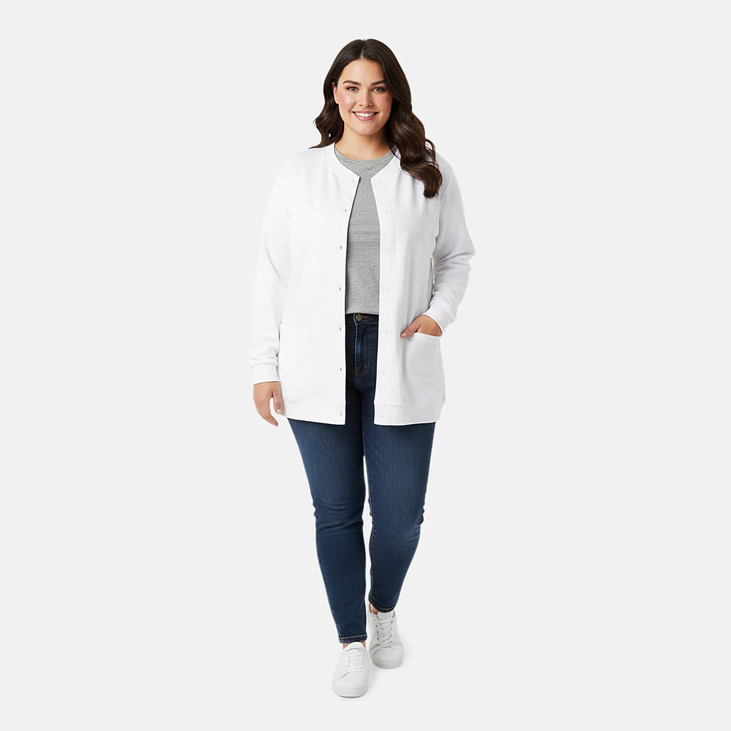CATALOGUE CLASSIC White Snap Front Fleece Cardigan with Pockets - 3X