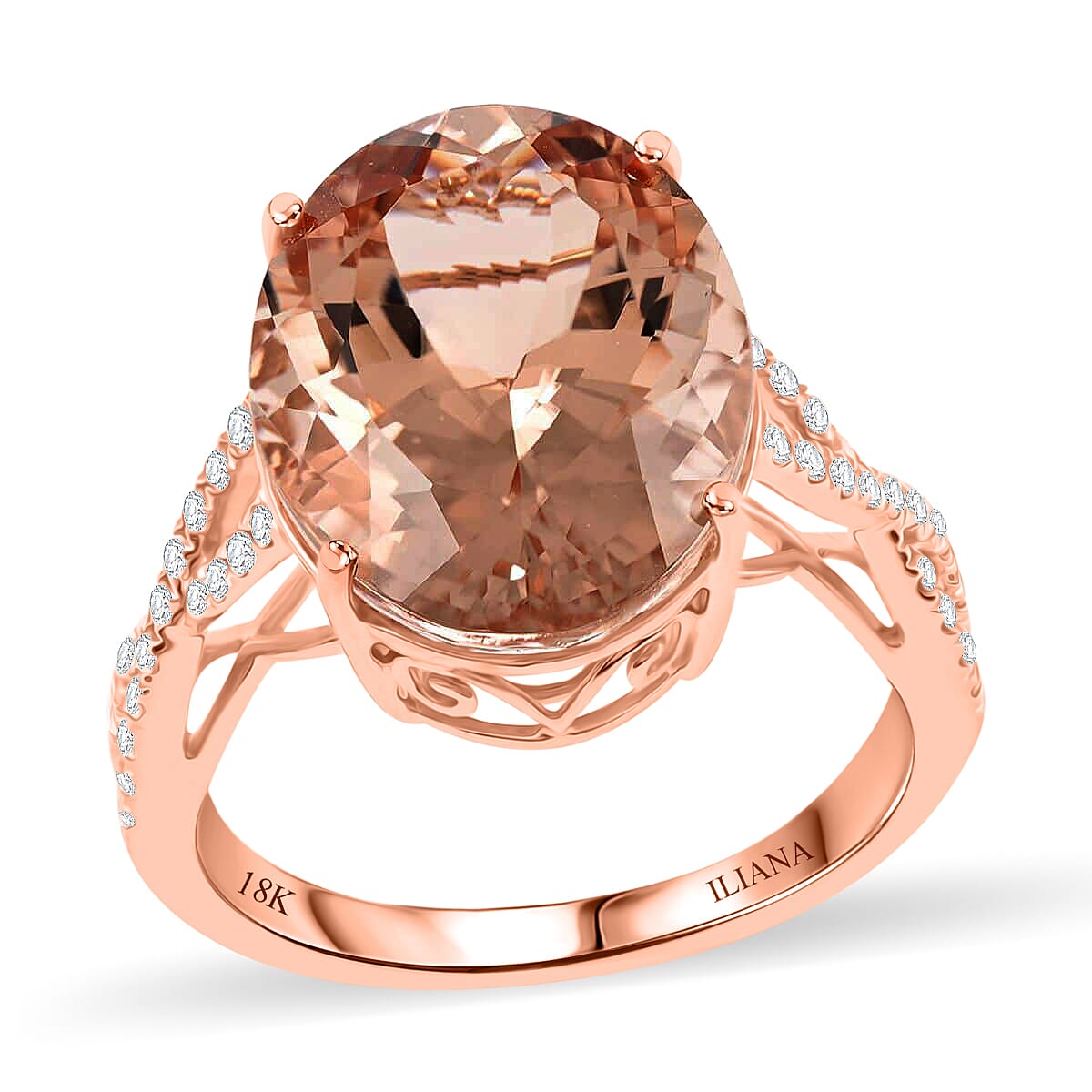Certified Iliana 18K Rose Gold AAA Marropino Morganite and G-H SI Diamond Ring (Size 8.0) 4.10 Grams 9.00 ctw
