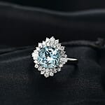 Certified AAA Mangoro Aquamarine, Diamond Ballerina Ring in 10K White Gold 3.27 ctw (Size 7.0)