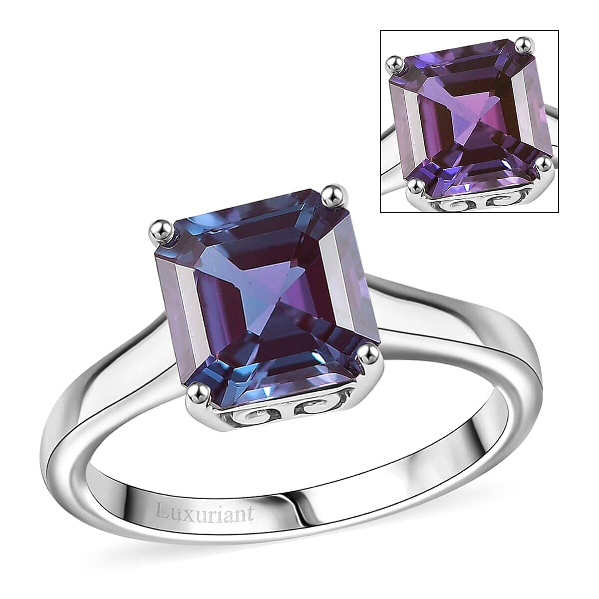 Certified & Appraised 10K White Gold AAA Asscher Cut Luxuriant Lab Grown Alexandrite Solitaire Ring (Size 6.5) 2.95 ctw