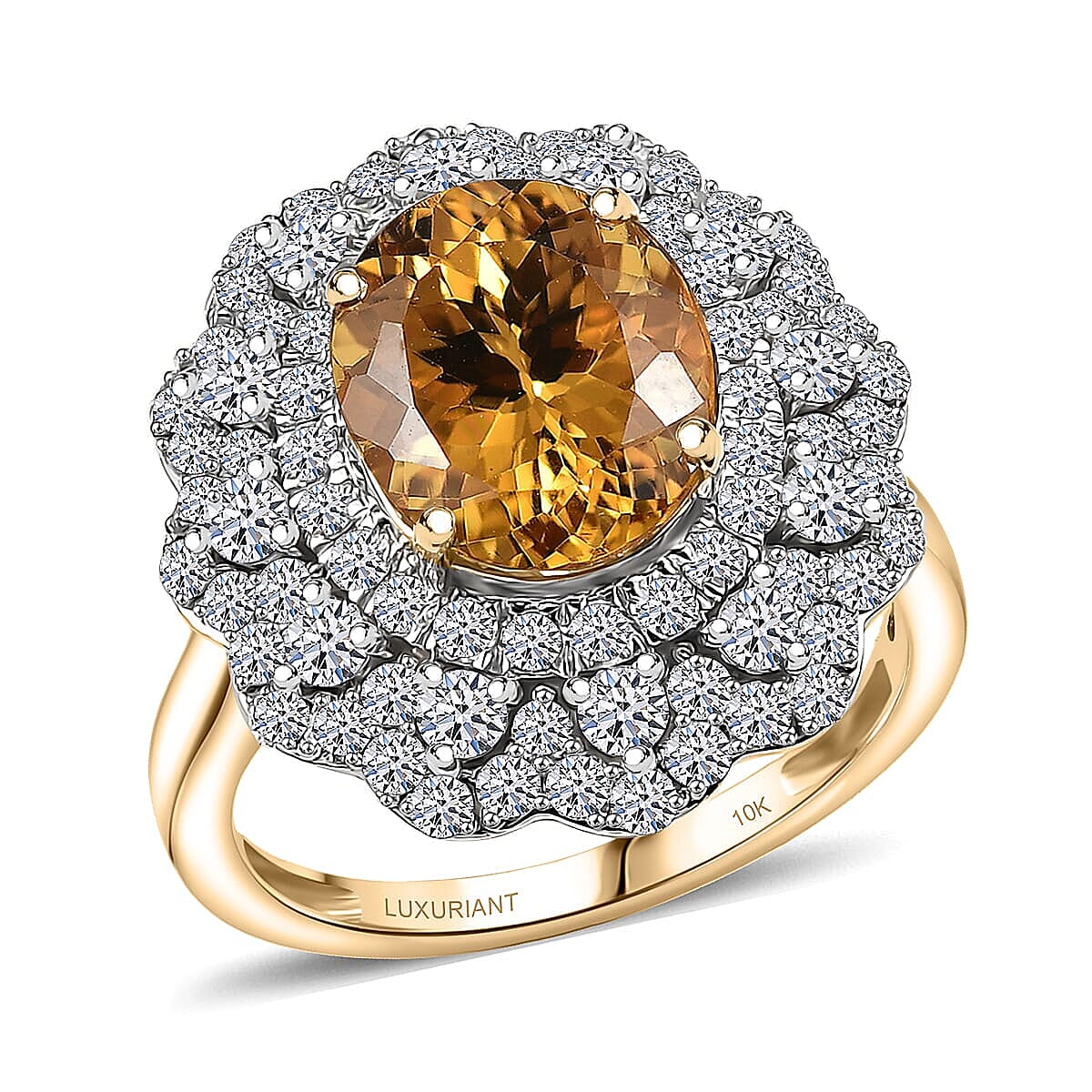 Flaunt exceptional style with this Brazilian heliodor ring in 10k yellow gold. The certified heliodor creates a stunning focal point for sophisticated occasions. You will admire this halo ring's luxurious golden brilliance.