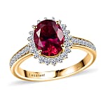 Certified & Appraised 10K Yellow Gold AAA Luxuriant Lab Grown Bixbite and Lab Grown Diamond (E-F, VS) (0.35 cts) Ring (Size 9.5) (Del. in 10-12 Days) 2.15 ctw