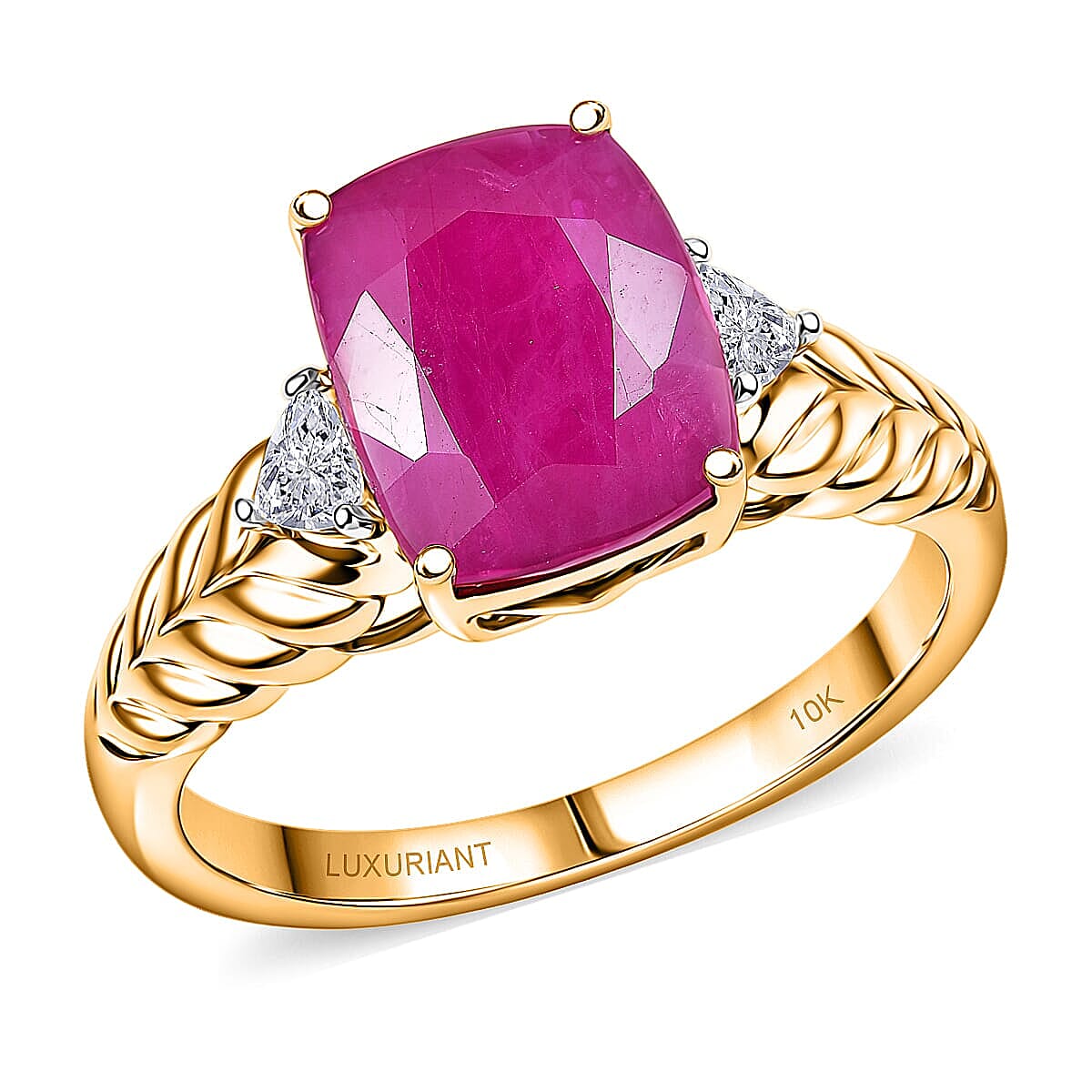 Certified & Appraised 10K Yellow Gold AAA Montepuez Ruby and Luxuriant Lab Grown Diamond G-H SI 5.00 ctw Ring (Size 5.0)