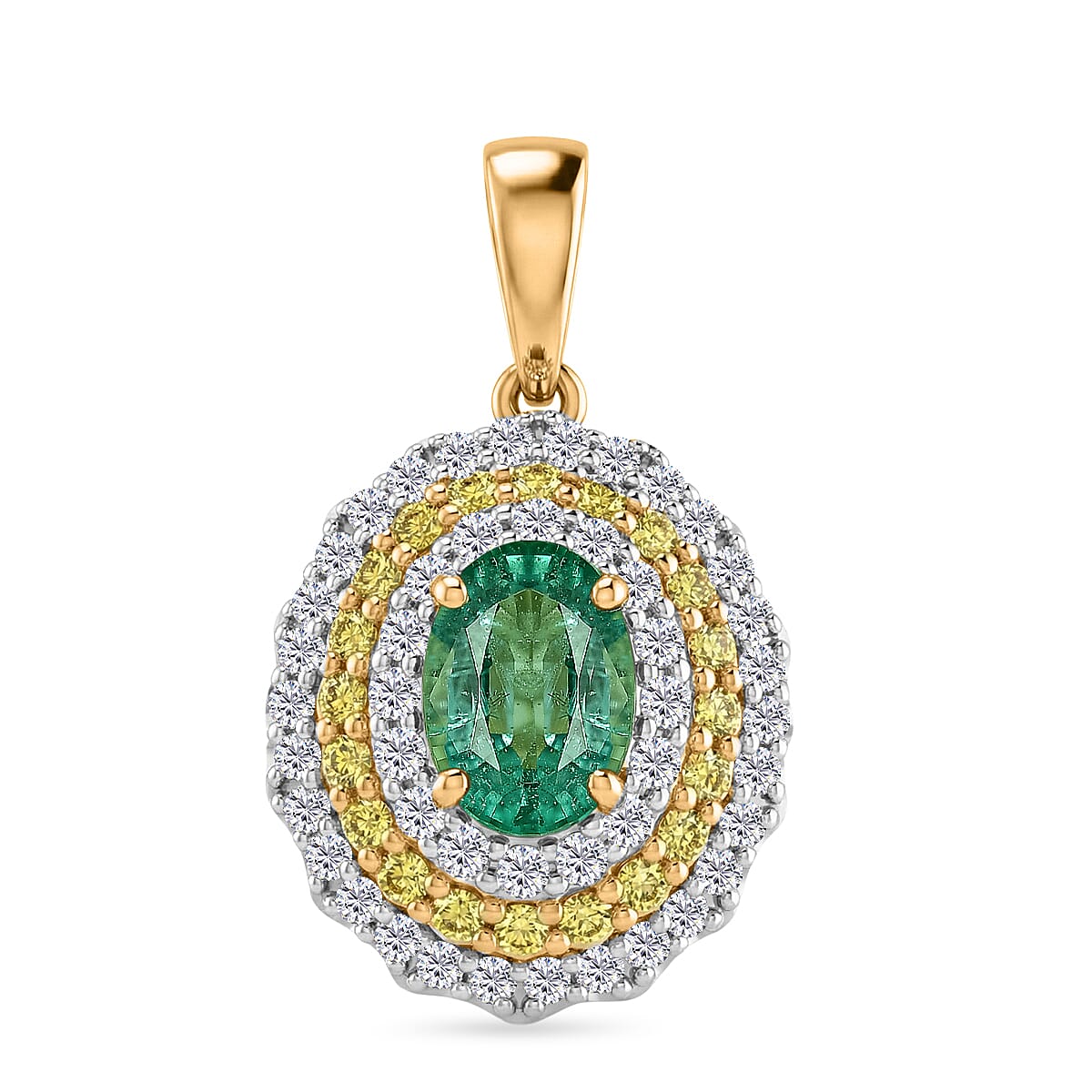 Certified & Appraised AAA Kagem Zambian Emerald and Luxuriant Lab Grown Yellow and White Diamond SI 1.50 ctw Pendant Necklace in 10K Yellow Gold (20 Inches)
