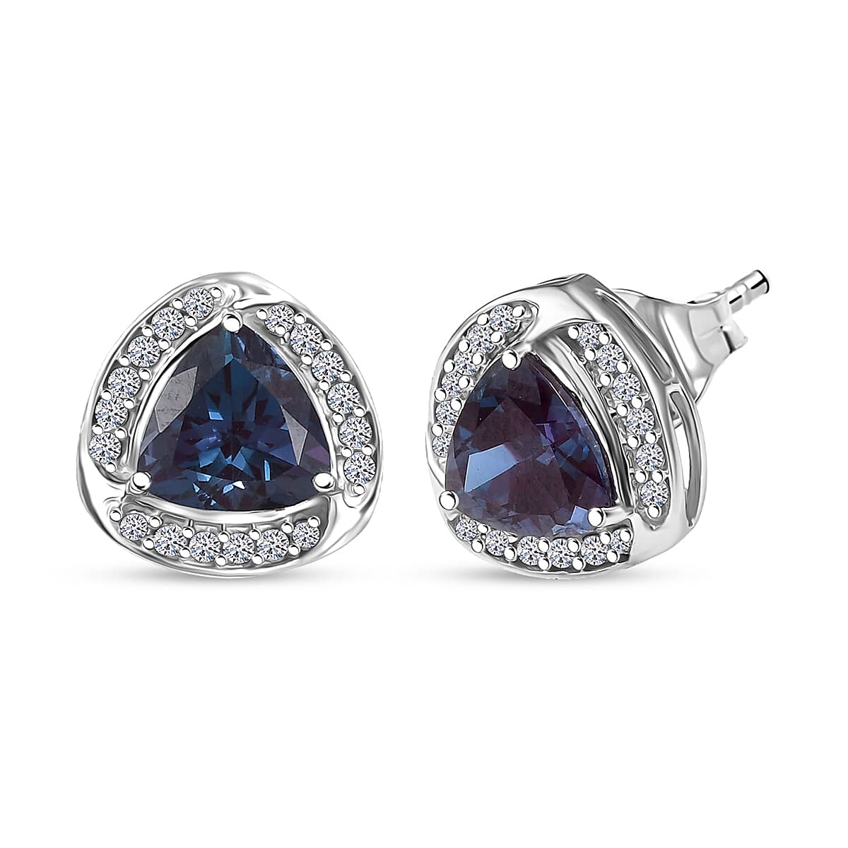Certified & Appraised AAA Luxuriant Lab Grown Alexandrite and G-H SI Lab Grown Diamond 3.20 ctw Earrings in 10K White Gold