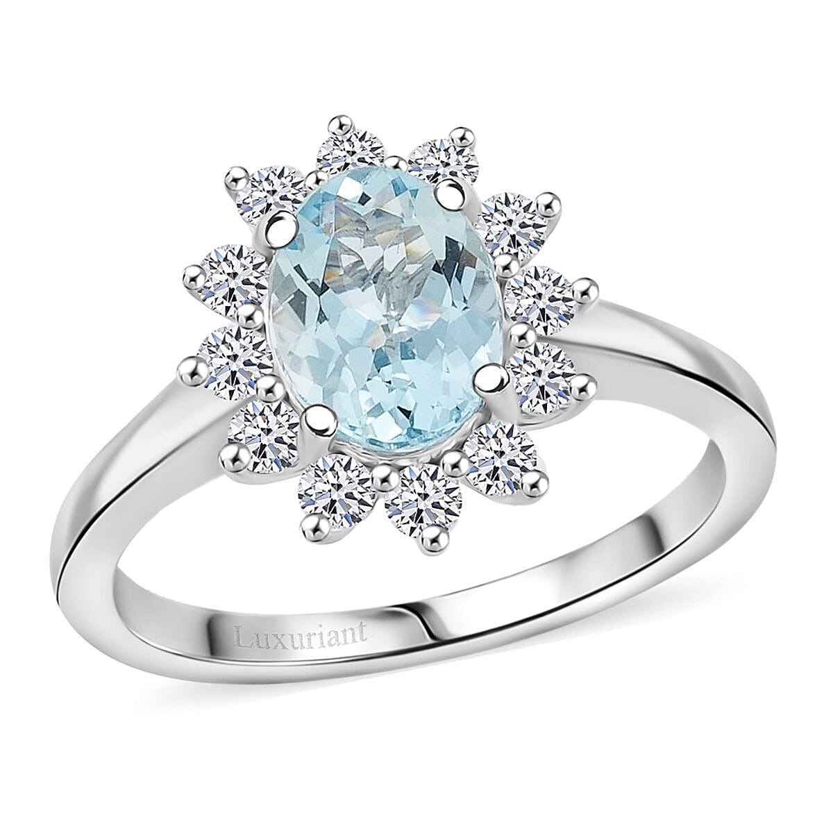 Certified & Appraised AAA Santa Maria Aquamarine and G-H SI Luxuriant Lab Grown Diamond 2.18 ctw Ring in 10K White Gold (Size 8.0)