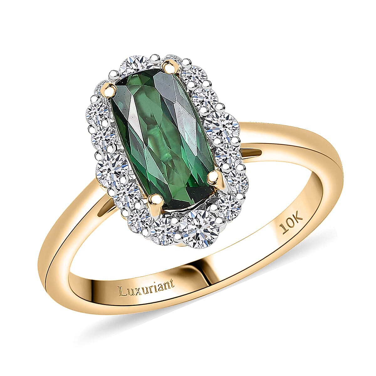Certified & Appraised AAA Santa Rosa Tourmaline and Luxuriant Lab Grown Diamond G-H SI 2.03 ctw Ring in 10K Yellow Gold (Size 7.5)