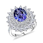 Certified & Appraised AAA Tanzanite, Diamond G-H SI Floral Ring in 10K White Gold 6.36 ctw (Size 8.0)
