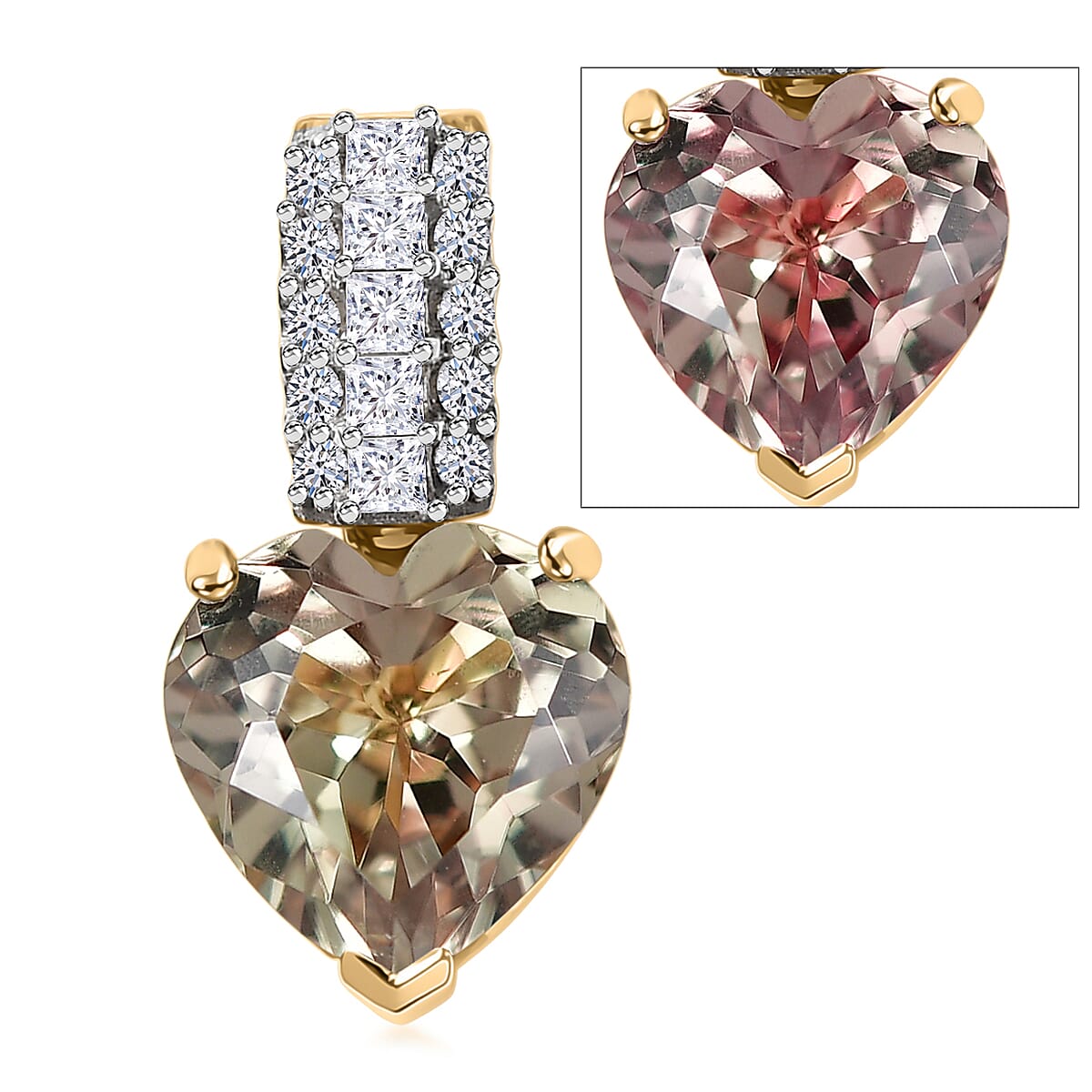 Upgrade your collection with this AAA turkizite and lab-grown diamond pendant necklace in 10K yellow gold. This luxury heart pendant necklace radiates vibrant color and refined brilliance. Certified and appraised, it offers timeless elegance for cherished occasions.