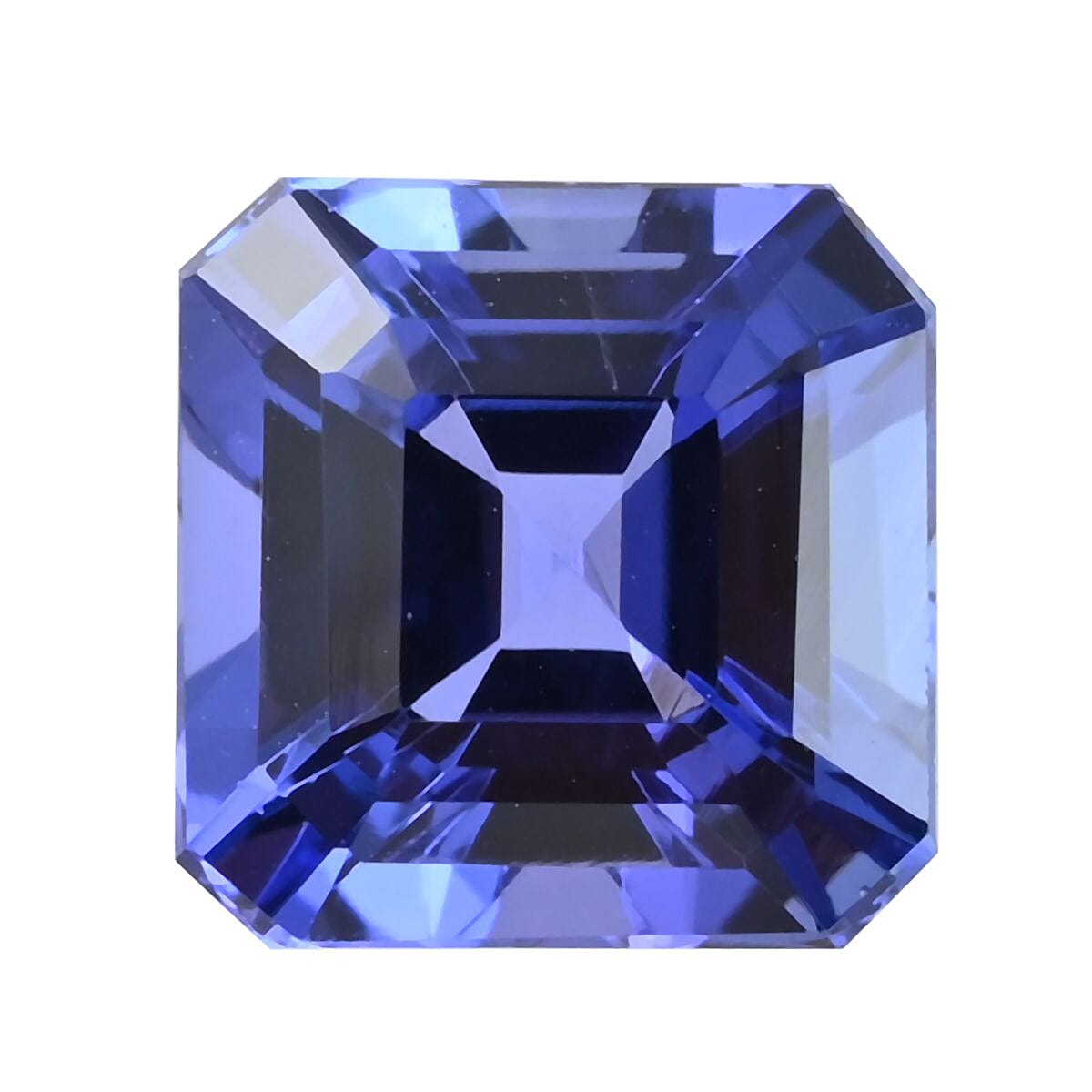 This AAAA tanzanite, prized for its deep blue-violet hues, is masterfully shaped into an Asscher cut, enhancing its luster and depth of color. The asscher cut not only highlights the intense colors of the tanzanite but also provides a mirror-like depth that makes the gem appear larger and more vibrant. This prestigious grade gemstone is perfect for bespoke jewelry pieces, offering a touch of vintage elegance with its unique square cut and stepped facets.