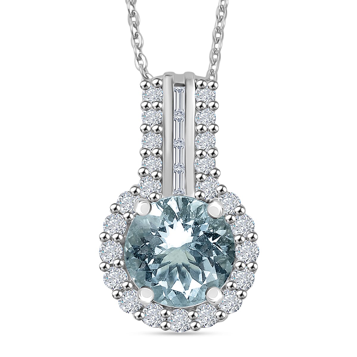Certified & Appraised D'Joy Premium Mangoro Aquamarine, Moissanite Pendant Necklace (20 Inch) in Rhodium Over Sterling Silver