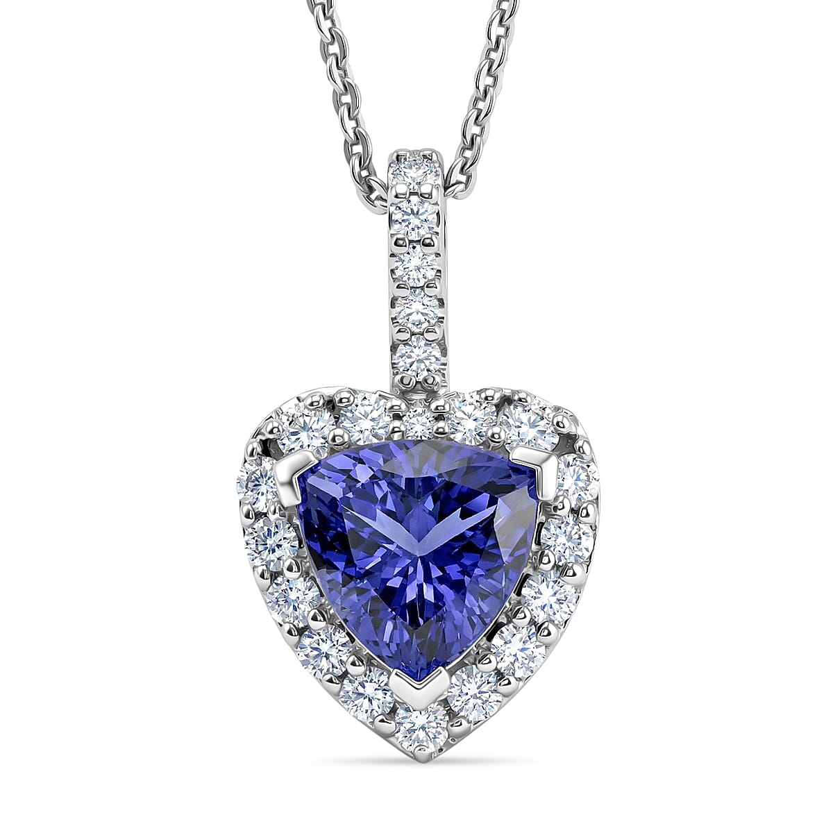 Certified & Appraised D'Joy Premium Tanzanite and Moissanite 1.74 ctw Pendant Necklace in Rhodium Over Sterling Silver (20 Inches)