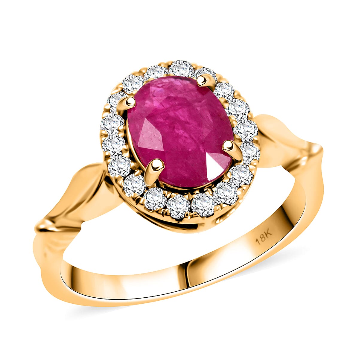 Certified & Appraised Iliana 18K Yellow Gold AAA Mozambique Ruby, Diamond (G-H, SI) (0.36 cts) Ring (Size 11.5) (5.42 g) 2.50 ctw