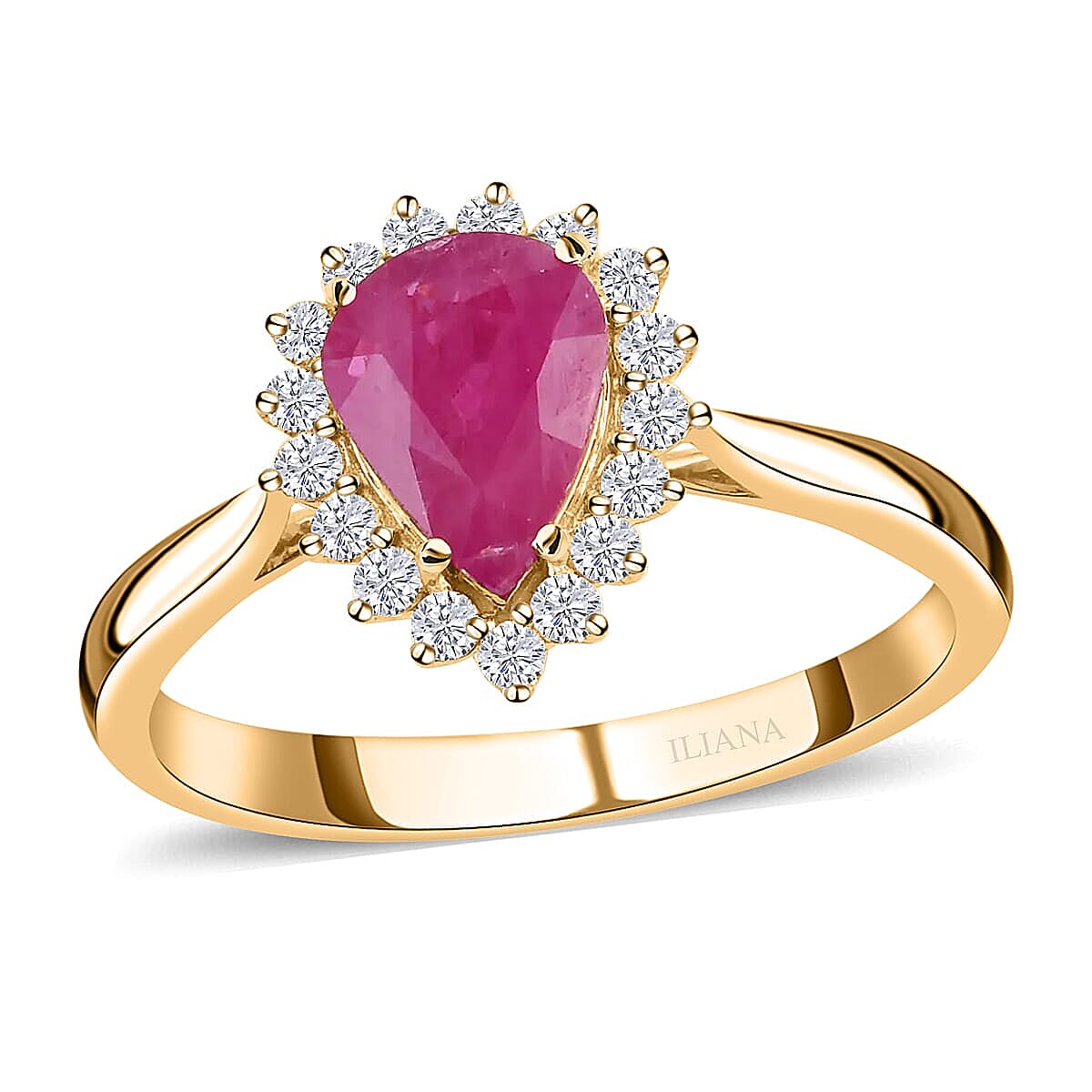 Turn heads with the Iliana AAA royal Thai ruby ring in 18K yellow gold. This certified luxury gold ring features a pear-shaped royal Thai ruby with captivating blood-red brilliance. Treasure its sophisticated elegance for your most romantic occasions.