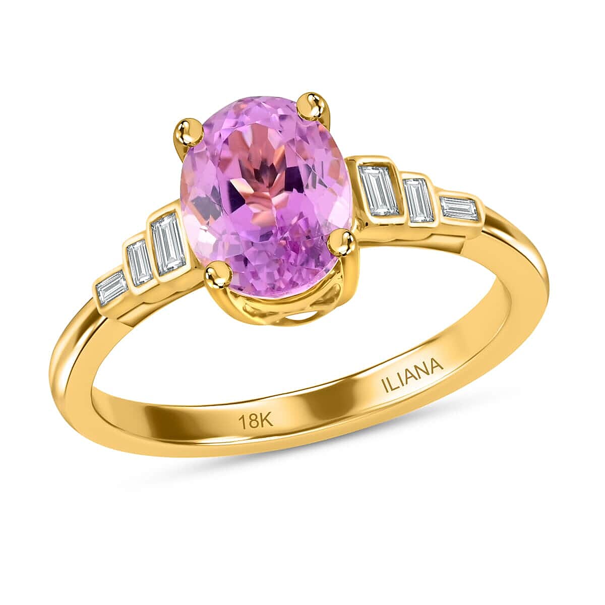 Certified & Appraised Iliana 18K Yellow Gold AAAA Patroke Kunzite and G-H SI Diamond Ring (Size 6.5) 2.65 ctw