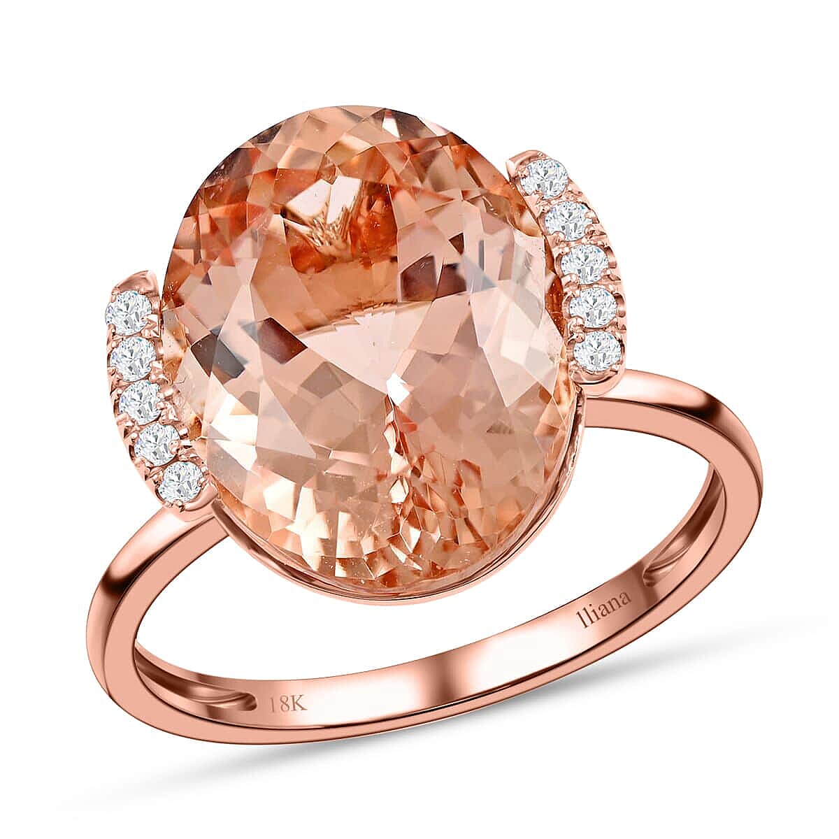 Certified & Appraised Iliana AAA Marropino Morganite and G-H I1 Diamond 9.00 ctw Ring in 18K Rose Gold (Size 5.0)