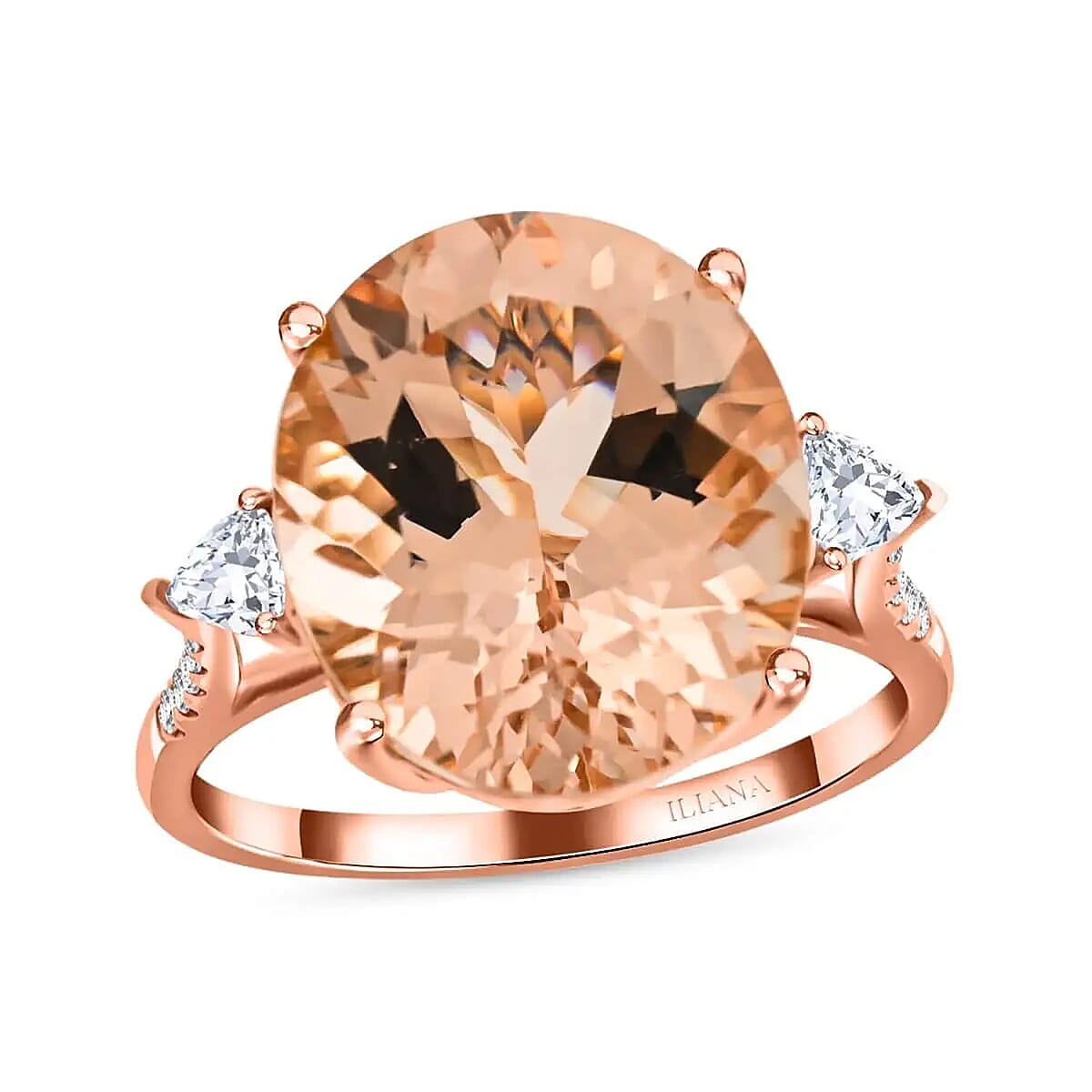 Adorn yourself with the unparalleled quality of the AAA Marropino morganite and diamond ring. This piece, meticulously crafted in 18K rose gold, showcases a premium grade AAA Marropino morganite, complemented by striking trillion-shaped diamonds.