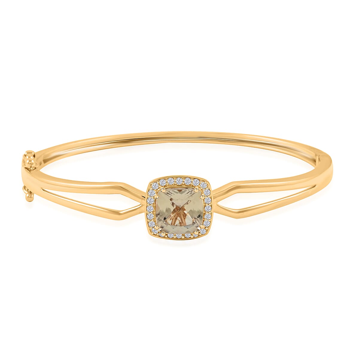 Certified & Appraised Luxoro 10K Yellow Gold AAA Asscher Cut Turkizite, Diamond (G-H, I2) (0.31 cts) Bangle Bracelet (8.00 In) (10.50 g) 4.40 ctw