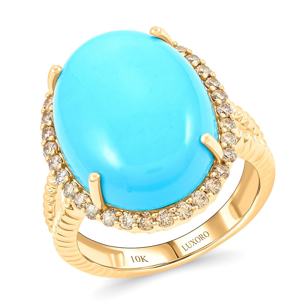 Certified & Appraised Luxoro 10K Yellow Gold AAA Sleeping Beauty Turquoise and G-H I2 Diamond Ring (Size 5.0) 11.05 ctw