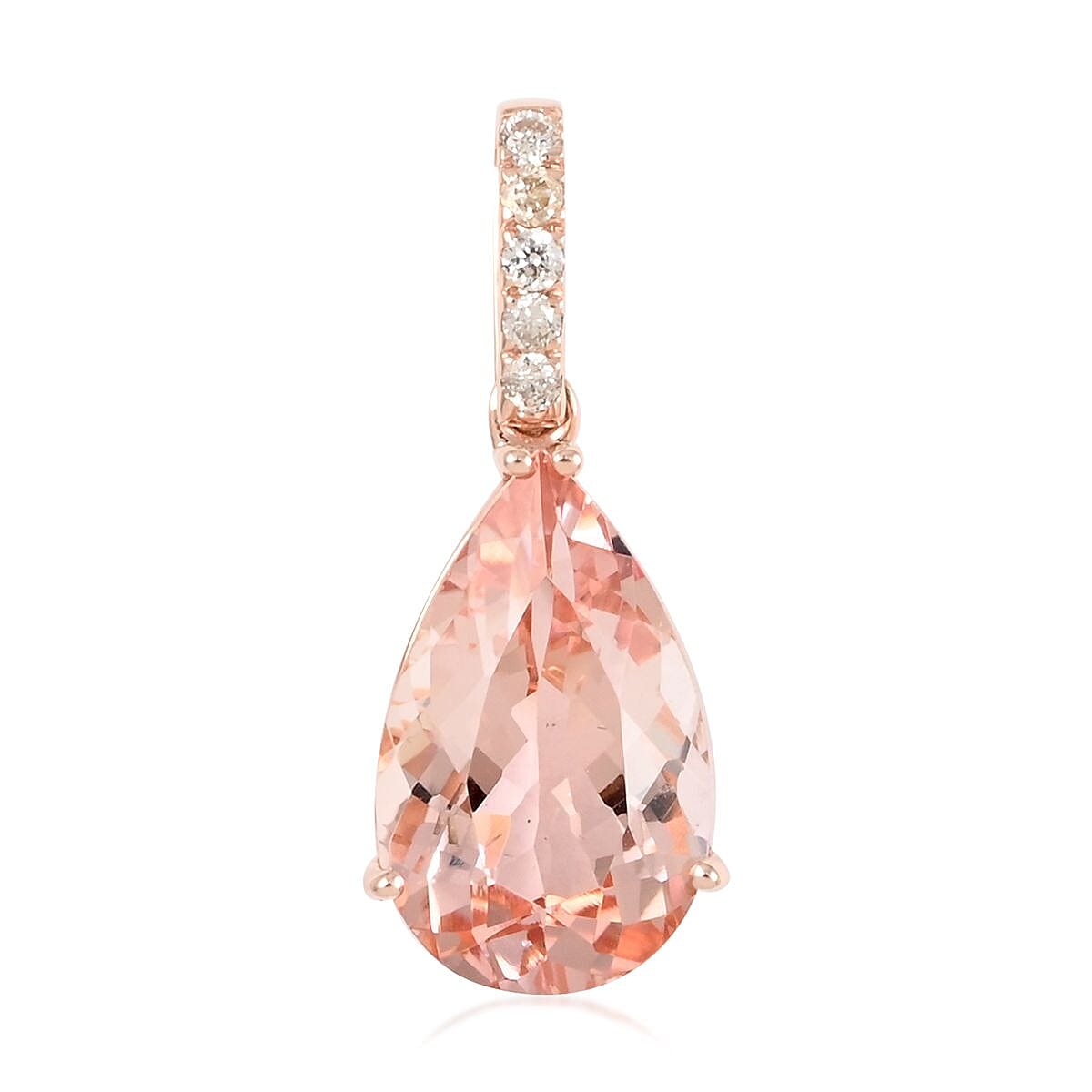 Certified and Appraised Luxoro 14K Rose Gold AAA Marropino Morganite and G-H I1 Diamond Drop Pendant without Chain 3.05 ctw