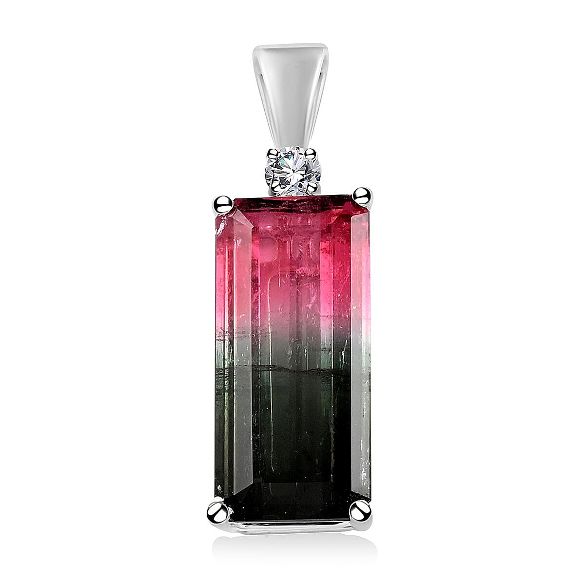 • DESIGN: This dual-color solitaire baguette shape AAA bi-color tourmaline pendant features a prong set gemstone topped with diamond roundel